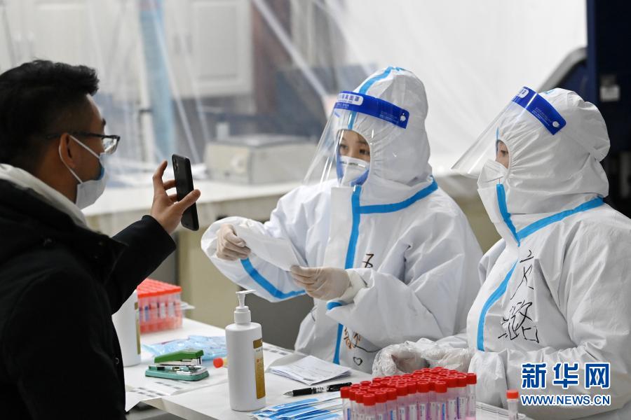 1月23日,在哈尔滨市抚顺社区核酸检测点,医务人员在核对市民身份。新华社记者王建威摄