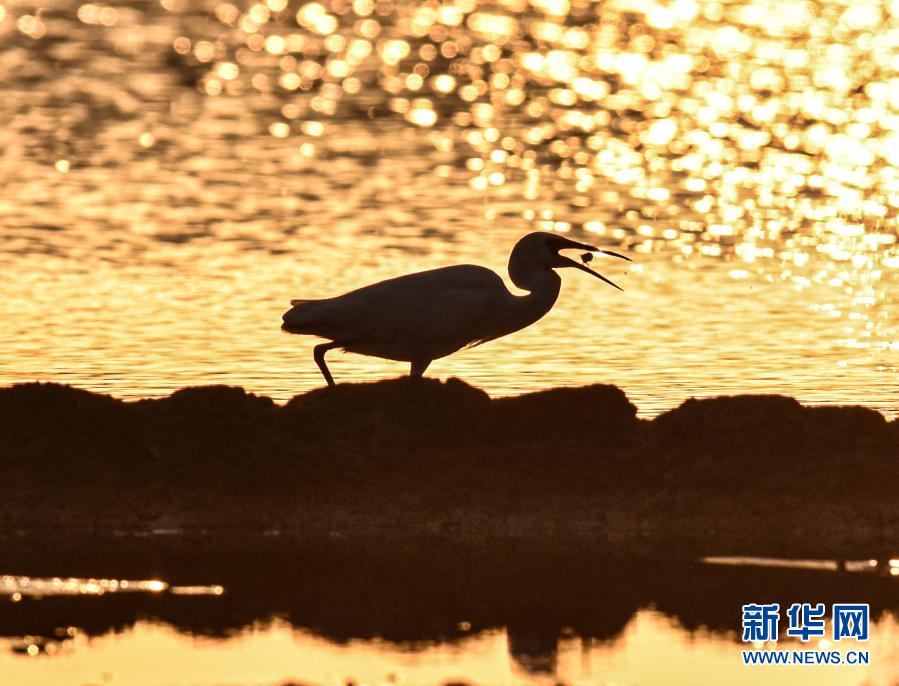 1月15日,一只小白鹭在海南万宁的一处湿地觅食。新华社记者蒲晓旭摄