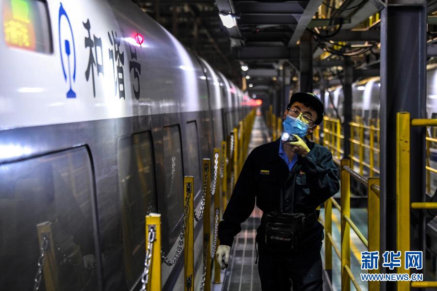 1月28日是春运首日,中国铁路南宁局集团有限公司南宁车辆段南宁动车所的地勤机械师们在春运前夕加强对动车组列车的检修、维护,为旅客护航。