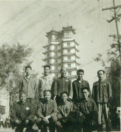 △翻拍的1971年部分建设者在二七纪念塔前的合照(郑州二七纪念馆供图)