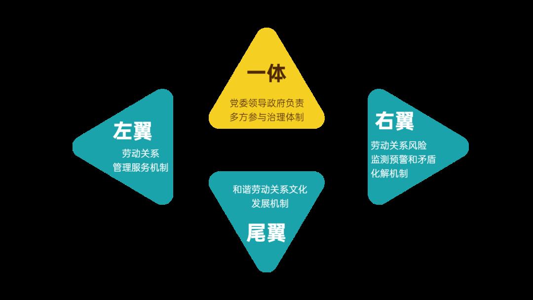 盐田在推进综合试验区建设过程中,注重处理好继承和发展的关系,综合试验和示范引领的关系,实践探索和理论创新的关系,逐渐形成了“一体三翼”的劳动关系治理新模式。