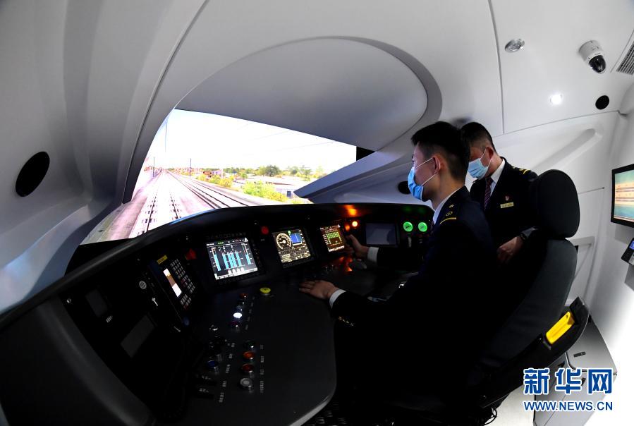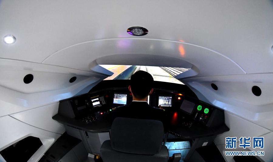 2月2日,机车乘务员在仿真驾驶舱内进行实训演练。新华社记者郝源摄