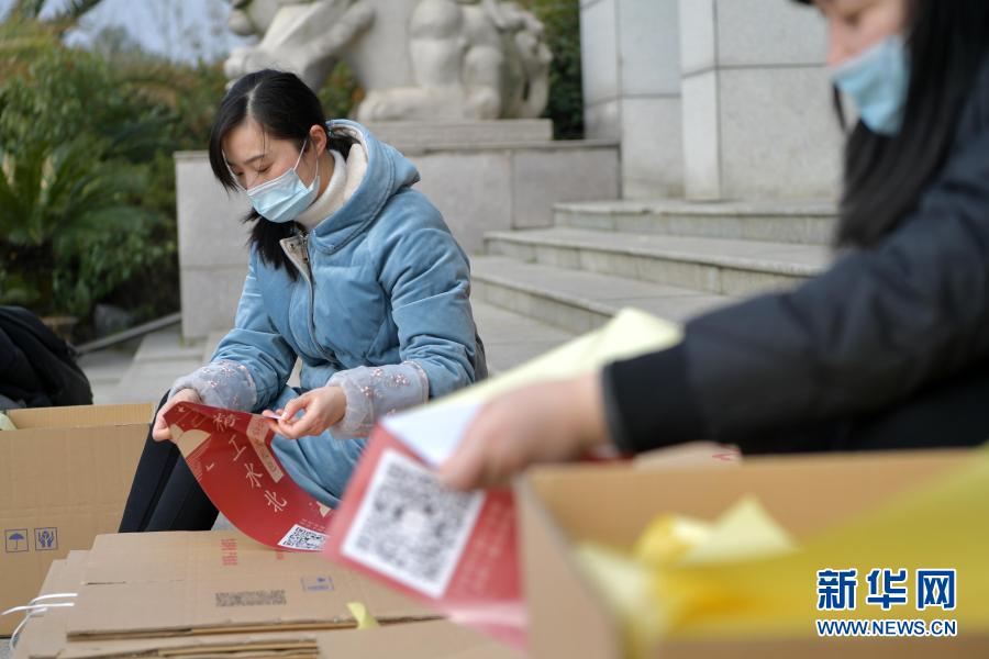 2月3日,在新余市渝水区水北镇,当地工作人员将家乡的特产装箱准备邮寄给在外就地过年的乡亲。新华社记者彭昭之摄