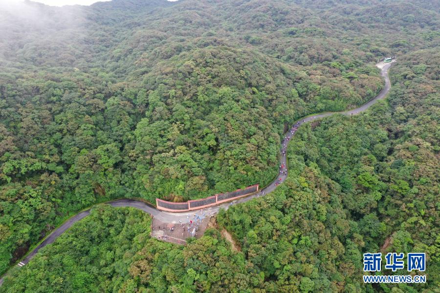 游人在广西兴安县境内的老山界参观(2019年6月30日摄,无人机照片)。新华社记者陆波岸摄