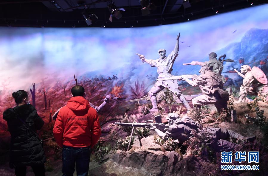 参观者在广西全州红军长征湘江战役纪念馆观看展览(2月3日摄)。新华社记者陆波岸摄