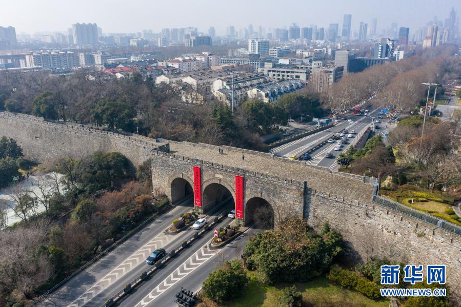 这是2月3日拍摄的南京中山门(无人机照片)。新华社记者李博摄