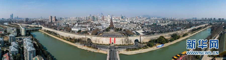 这是1月30日拍摄的南京中华门(无人机拼接照片)。新华社记者李博摄