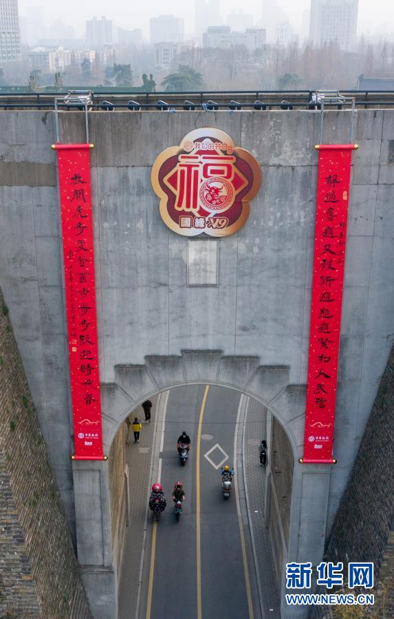 南京:城门挂春联 喜庆迎新春