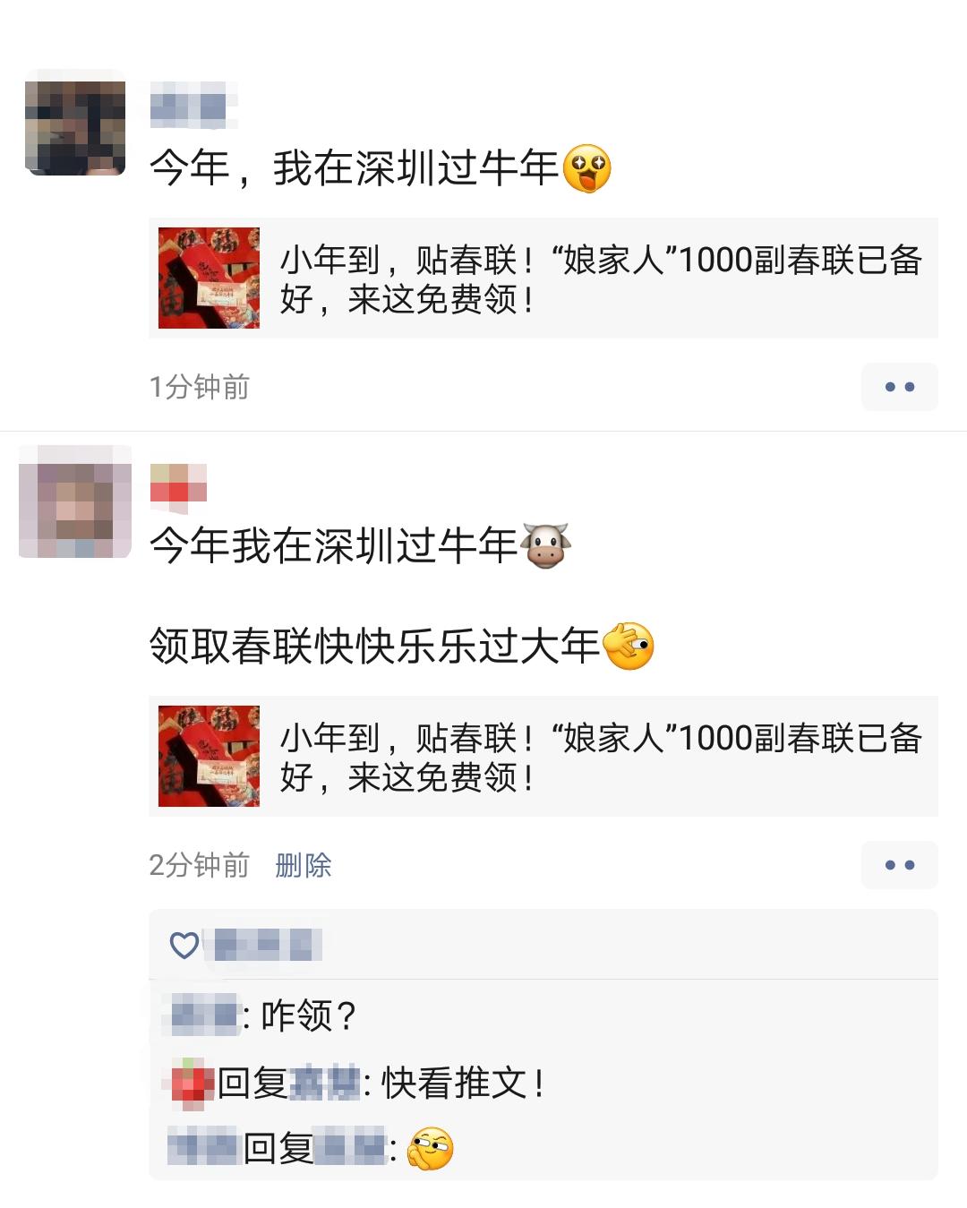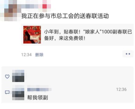 大家在朋友圈里@亲朋好友前来领取春联