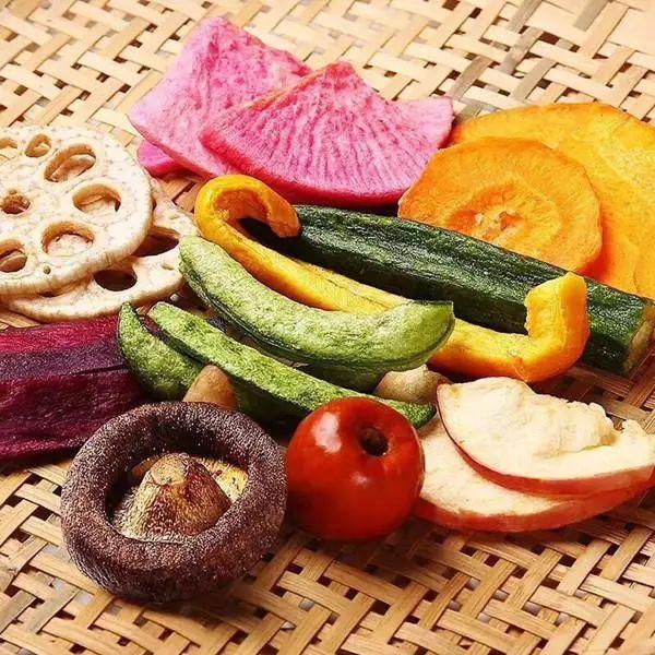 非油炸型采用真空冷冻干燥方式,能有效保存果蔬的部分热敏性营养成分,并较好地保存果蔬的色泽。