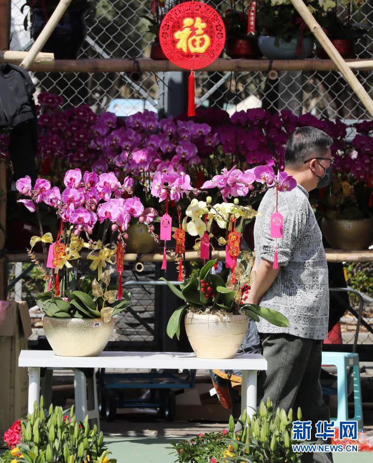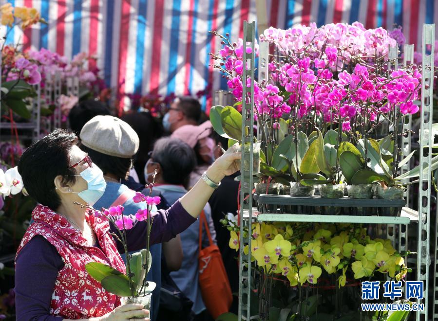 2月6日,市民在香港维多利亚公园的年花销售点选购鲜花。新华社记者李钢摄