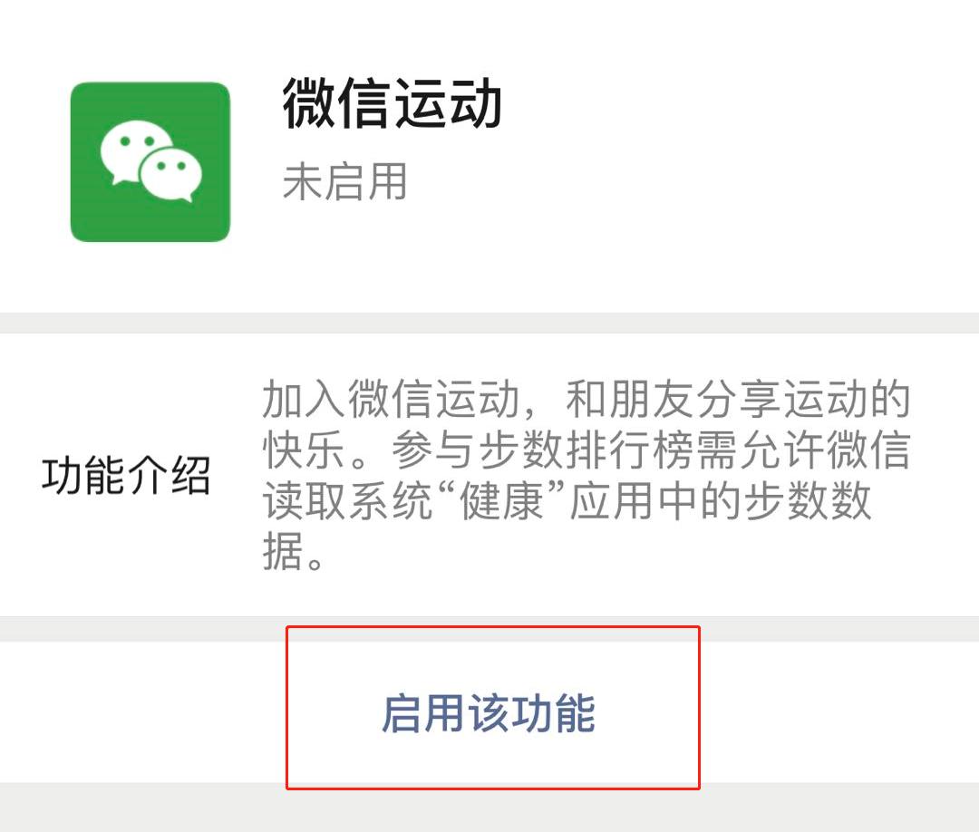 开通“微信运动”权限。打开微信APP,搜索“微信运动”并点击“启用该功能”。