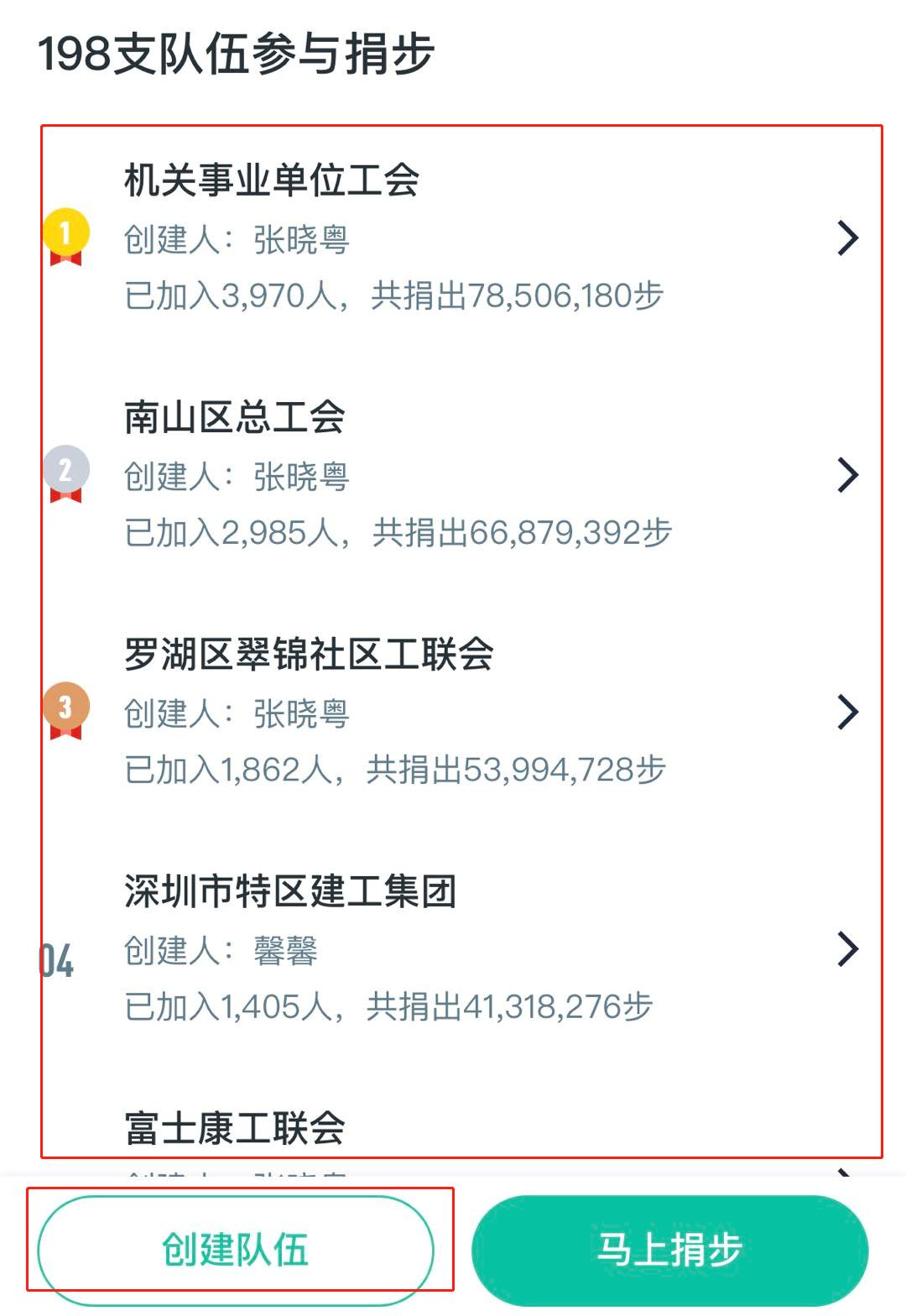 在“深圳工会”微信公众号后台,回复关键词【送健康】进入活动界面,选择你想要参与捐步的队伍,加入捐步即可。(职工小伙伴也可点击左下角,组建自己的队伍哟~)