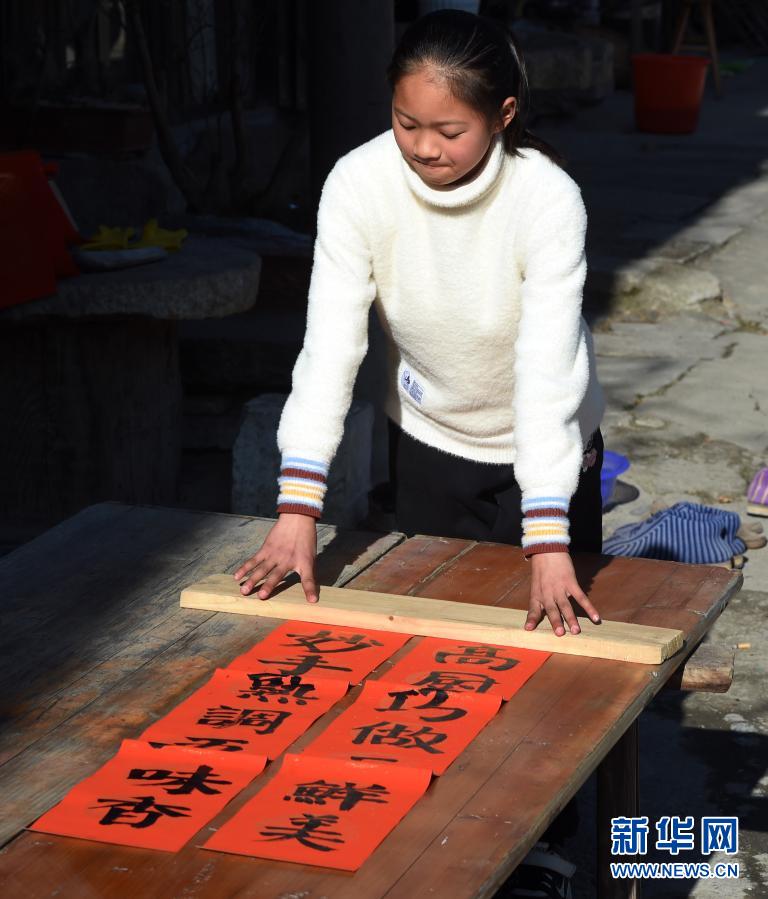 2月6日,安徽省宣城市泾县查济村的村民晾晒刚写好的春联。新华社记者周牧摄
