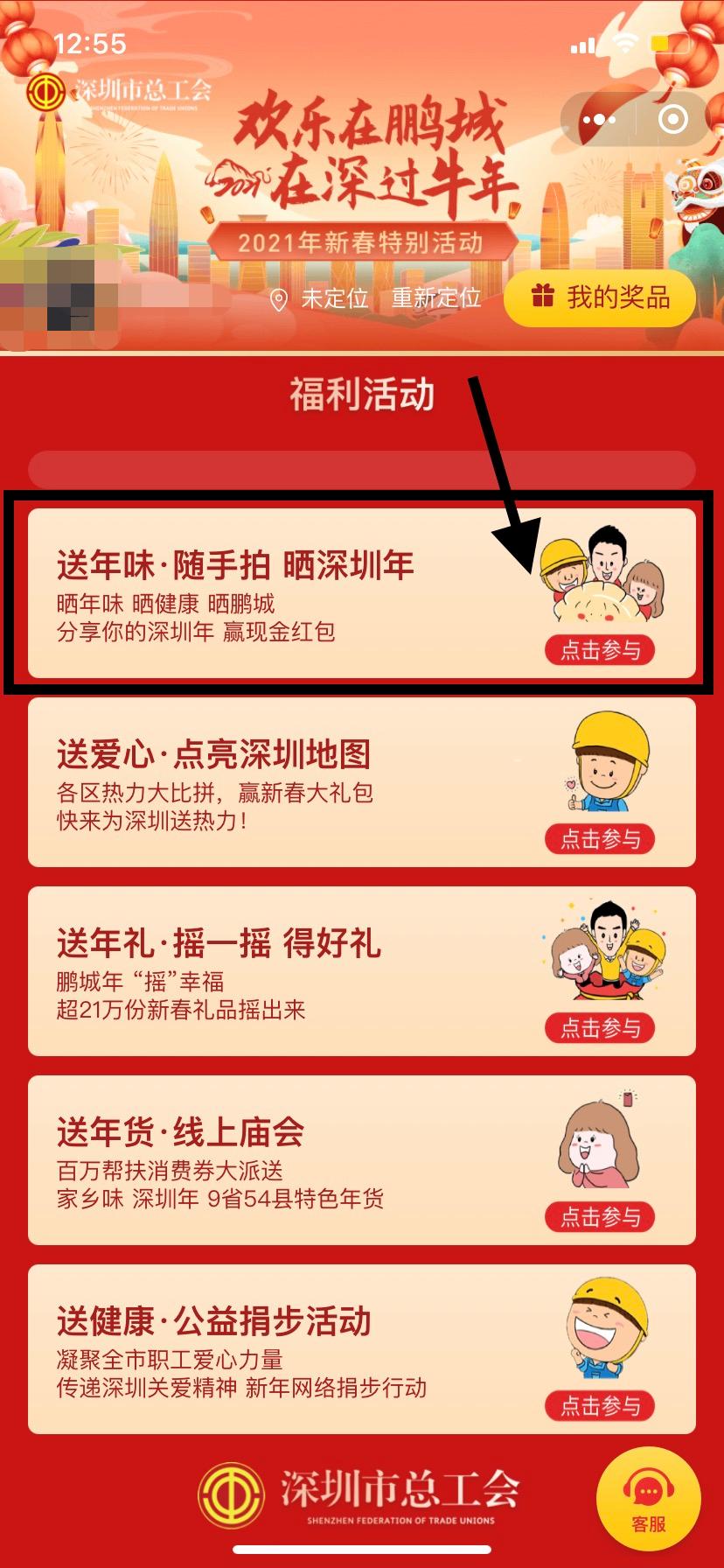 “欢乐在鹏城·在深过牛年”是为深圳市总工会2021年新春特别活动打造的微信小程序。进入小程序界面可以看到“送年味”“送爱心”“送年礼”“送年货”“送健康”五个活动分区,点击则可进入参与对应的新春活动,领取海量福利!