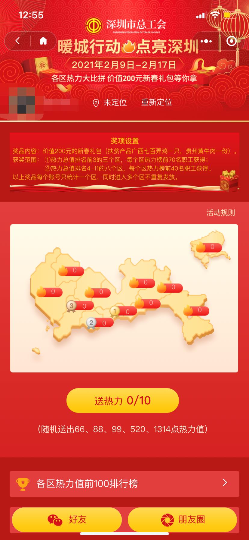 在深过年的职工们,可以通过小程序,为自己所在的区送热力,营造一个有温度、有年味的深圳年。