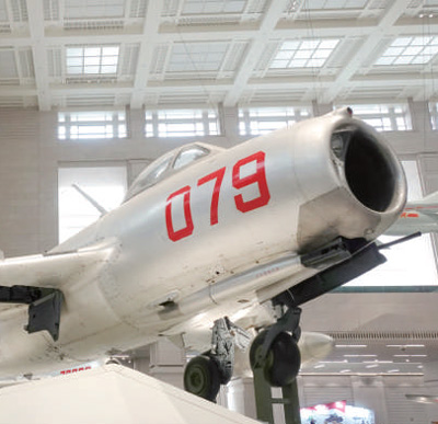 中国人民志愿军空军战斗英雄王海驾驶过的苏联造米格—15战斗机。本报记者陈尚文摄