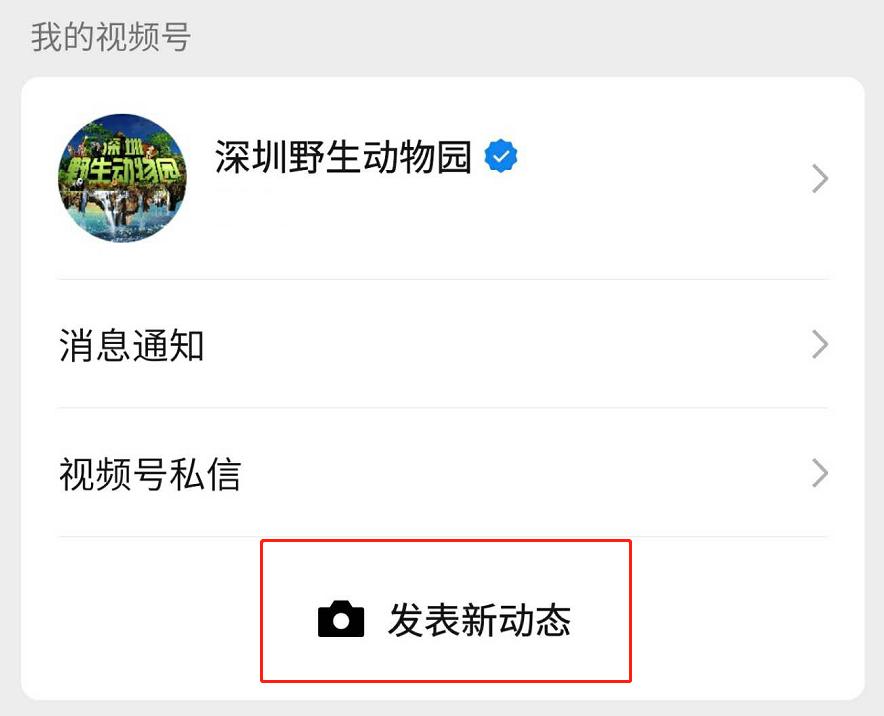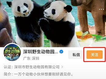 打开微信视频号搜索“深圳野生动物园”并关注(若已关注,忽略此步骤)。