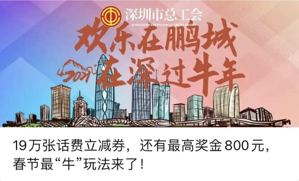 “欢乐在鹏城·在深过牛年”系列活动是深圳市总工会对辛苦奋斗一整年的职工的由衷感谢和致敬,将在春节期间通过“送年货、送年礼、送年味、送爱心、送温暖、送活动、送健康”等方式,线上送出七大好礼,为全市职工带来一个幸福、温馨的暖心深圳年。