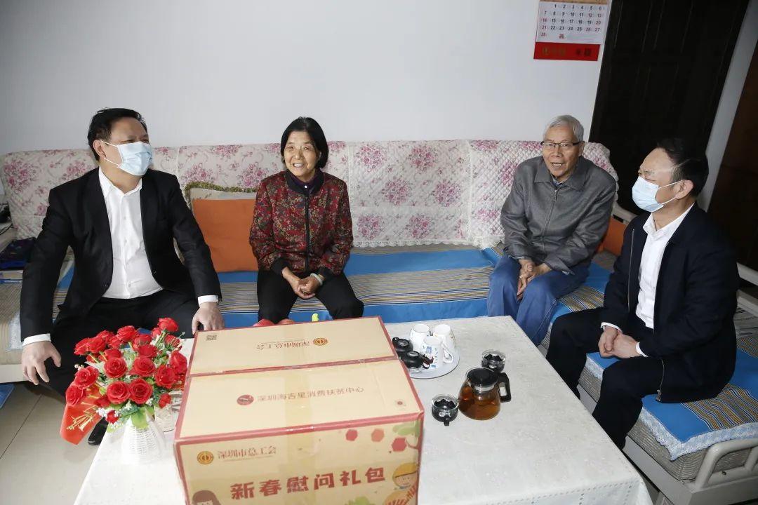 2月9日上午,深圳市人大常委会副主任、市总工会主席彭海斌带队前往全国先进工作者冯芝绒家中,代表深圳市总工会为她送上美好的新春祝福,向她致以崇高的敬意。