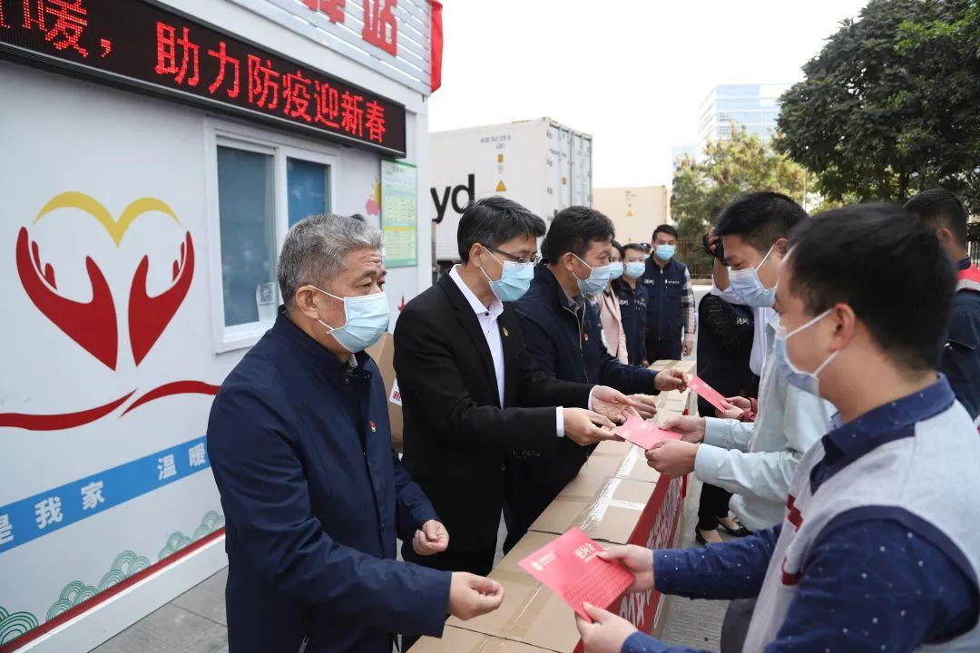 2月2日,深圳市人大常委会副主任、市总工会主席彭海斌带队前往深圳市疾病预防控制中心,慰问疫情防控一线职工,为他们送上慰问金和新春年货慰问礼包。