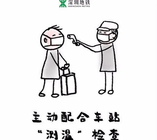 主动配合车站“测温”检查。在安检点进行体温检测,无异常后才能进站乘车。如发现有体温异常的乘客,将立即启动相关应急预案开展先期处置工作,上报相关部门,并按照规范要求进行隔离。(为了提高乘客同行效率,深圳地铁车站正陆续安装红外热成像体测设备。如没有工作人员测量体温,请不要担心,是因为地铁站用了更高效的“黑科技”。)
