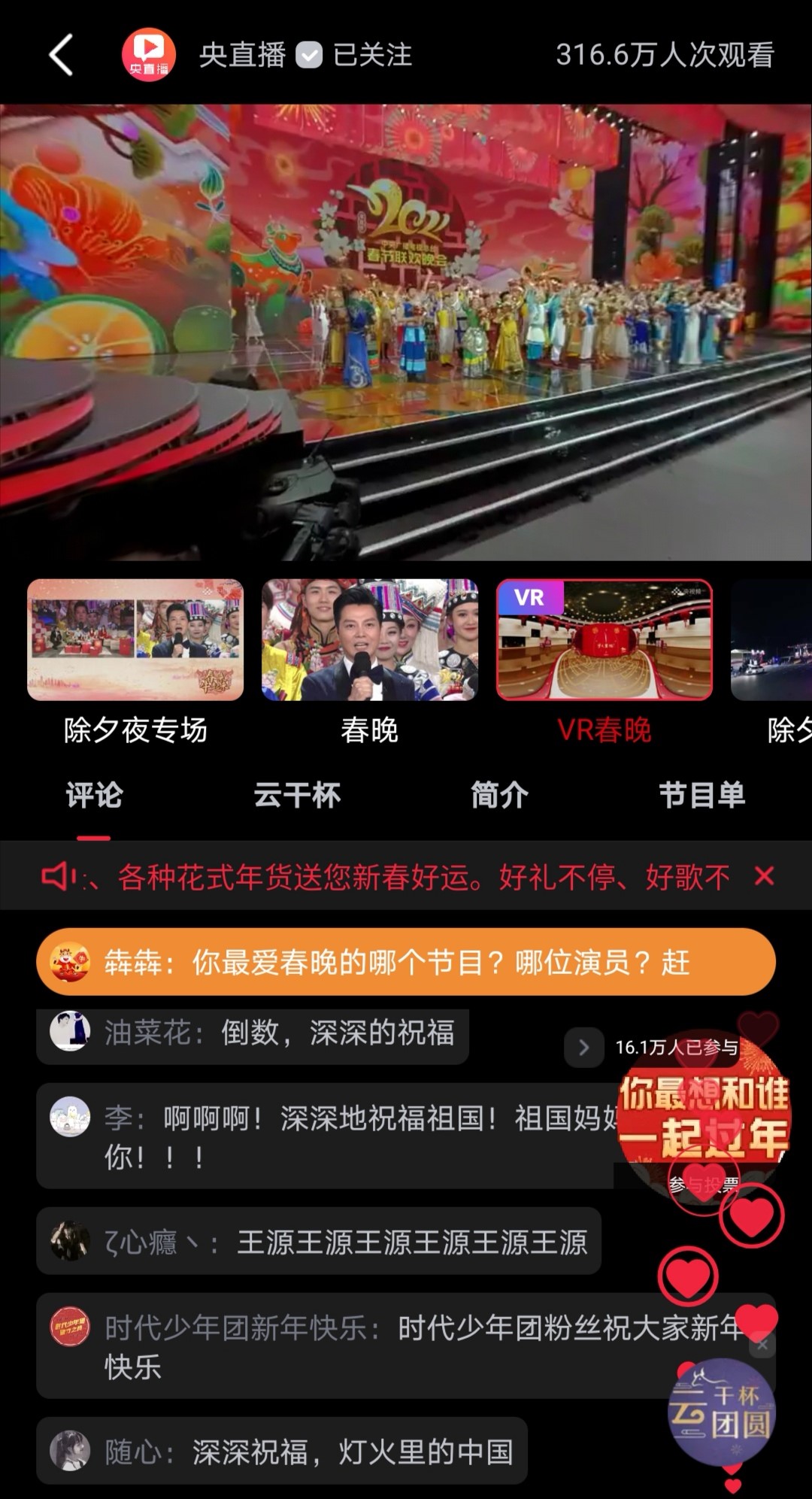 在中国首个国家级5G新媒体平台“央视频”等客户端上,数百万在线人次观看了本次沉浸式的春晚VR直播。