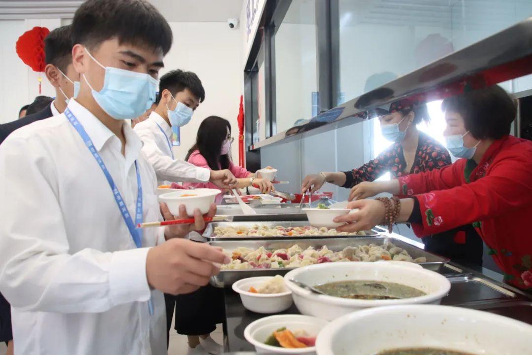 随后,大家齐聚食堂,品尝热腾腾的饺子,吃到嘴里,笑在脸上,暖在心里。鹏城实验室项目主任许冰介绍,项目部在市工务署的指导下,精心策划了“厨艺秀”、“年夜饭”、“体育竞赛”、亲子互动游戏、个人才艺展示等丰富多彩的年味活动,丰富基层广大来深建设者的精神文化生活,希望留深建设者在项目上能度过一个暖心年、舒心年、开心年。