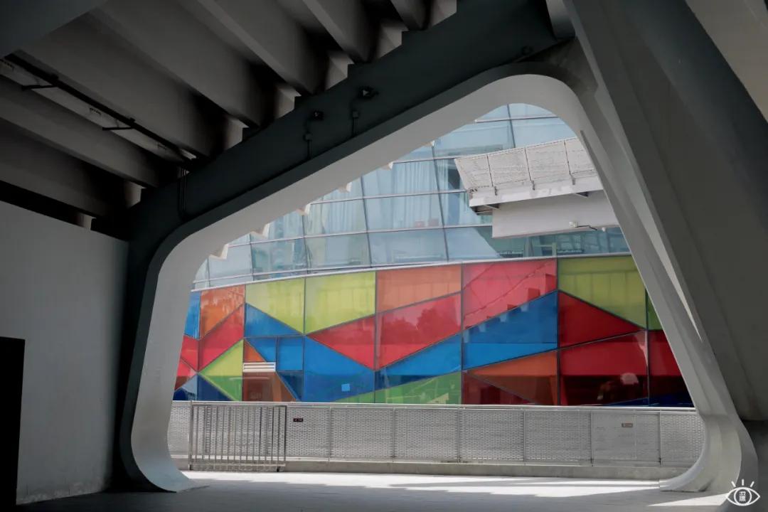 “超时空隧道走廊”旁有一处彩色玻璃墙