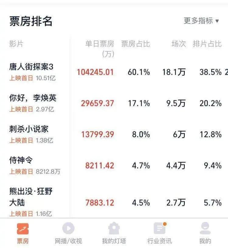 而在今年的春节档,就地过年、线上观影等倡导相继落地,线上内容市场空前丰富,线上观影对线下院线的影响或许比预想更大,而电影市场现在格局极端,《唐探3》一片独大,6部电影虎口夺食,故事也许将出现更多变数。