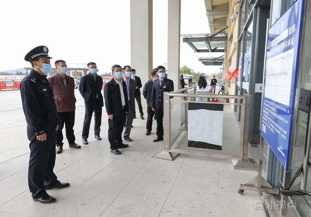 在鲘门片区,黄伟平一行先后前往鲘门镇政府和鲘门高铁站慰问检查,并听取了疫情防控、服务保障等工作情况汇报。黄伟平表示,当前基层疫情防控任务依然艰巨,全区各镇村要落实好属地管理责任,摸清来区、留区、离区人员底数,织密筑牢防控网格。要切实关心关爱疫情防控一线执勤人员,用更务实、更贴心的举措,向他们传递党和政府的激励和关怀。要落实落细鲘门高铁站等全区重点区域的疫情防控、警务安保、节日氛围营造等工作,确保节日期间深汕合作区门户的安全稳定、喜庆祥和。要加强群众生活保障,确保各类物资供应稳定,让全区人民群众平安欢乐过大年。