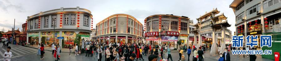 游客在潮州古城牌坊街游玩(2月13日摄,手机全景照片)。