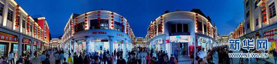 游客在潮州古城牌坊街游玩(2月13日摄,手机全景照片)。