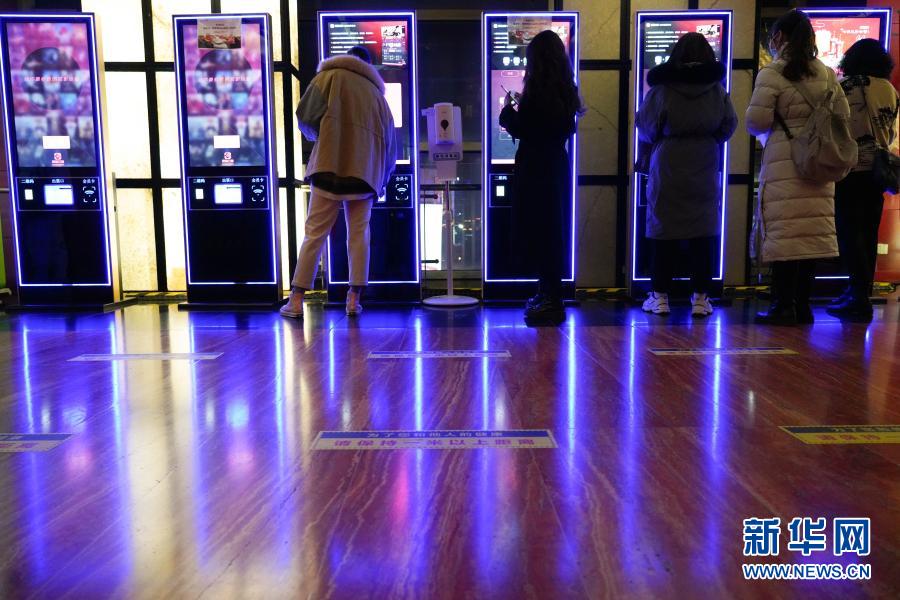 2月17日,观众在北京西单的首都电影院自助取票机前取票。新华社记者 陈钟昊 摄