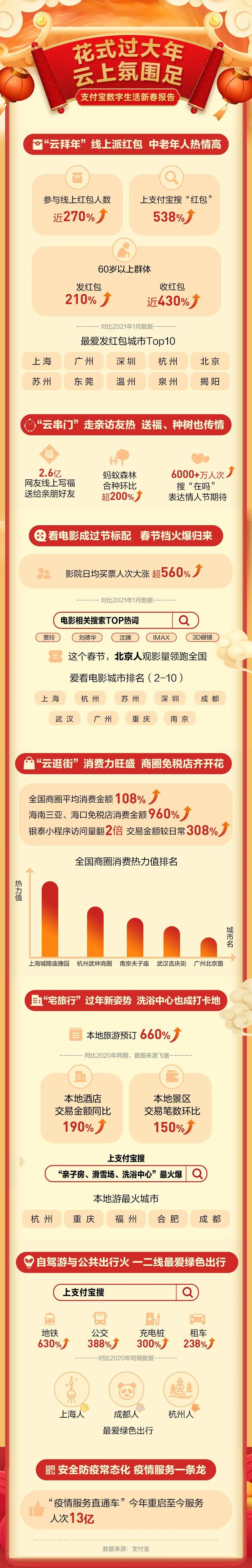 最近,支付宝数字生活平台发布了新春数据报告,报告显示——