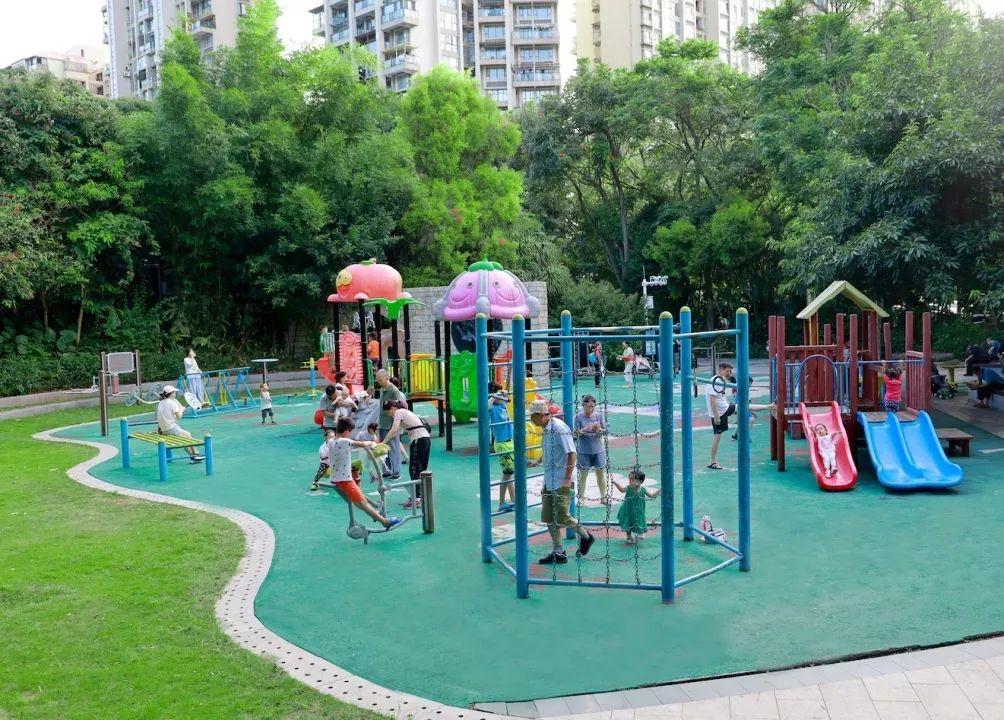 很多家长带着孩子在这里玩耍