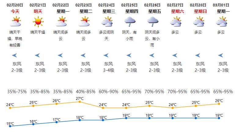 21日-23日晴天到多云,空气干燥,气温逐日回升。
