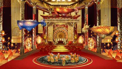 《唐宫夜宴》讲述了正值青春的女乐官在赴宴起舞的路上发生的趣事,将不为人知的可爱、顽皮的形象、性格特点与禁锢下的宫廷生活形成鲜明对比,服装、造型采用极具特点的三彩元素,并极大可能地还原历史,将观者代入到盛唐时期独有的美学空间,展示出三彩艺术之大美中原,大美华夏。