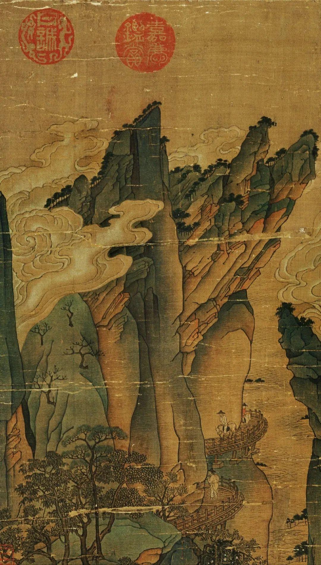 四川古称“蜀”,皇帝凌驾到一个地方叫“幸”。这张《明皇幸蜀图》,就是记录唐玄宗避难四川途中的情形。