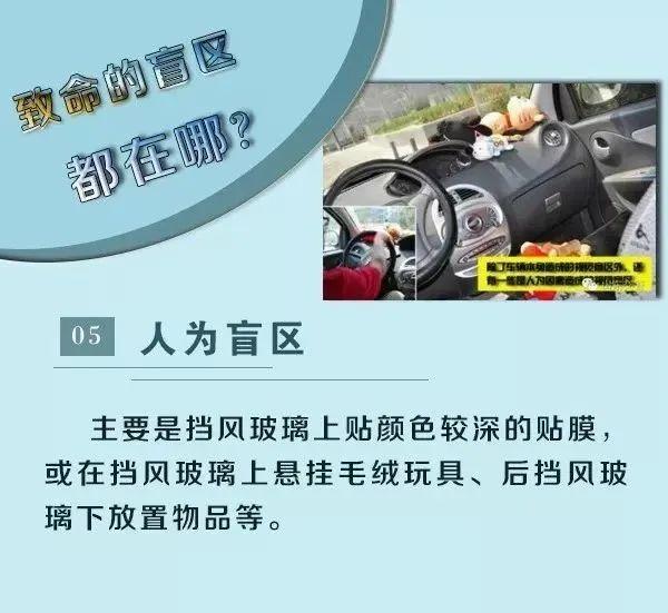 车内“固定”视线盲区包括车头盲区、A柱遮挡形成的盲区、车尾盲区等。当孩子在盲区内蹲下停留、玩耍时,司机在驾驶室内无法看到,很容易发生碰撞事故。