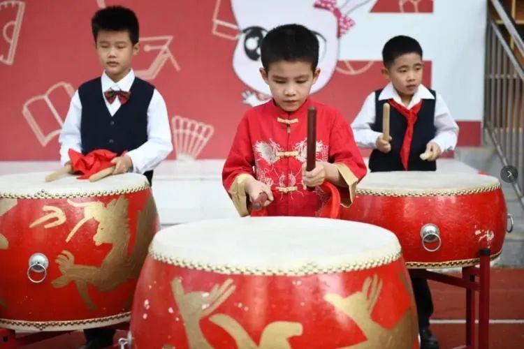 充满年味的开学典礼上,孩子们齐诵“容止格言”。升旗仪式上,同学们唱国歌、行队礼。由学校合唱团、舞蹈团、音乐剧社团、中国鼓社团及青年教师代表、家长代表与校长合作表演的节目《欢天喜地迎新年》,经过连日的策划和排练,呈现出了一场贯穿过去与未来,展现滨海魅力、年味十足的串烧表演,浓浓的传统年味在校园内四溢。(记者 安康 通讯员 杨教)
