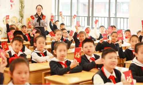 一大早,龙华区外国语学校的学生按捺不住自己的兴奋,等不及和同学老师见面。学生从老师手中接来了新春红包,幸运地获得了新学期的第一个美好祝福。随后,龙外学子以响亮的歌声为祖国歌唱,流露出对祖国的热爱。(记者 安康 通讯员 蔡芮)