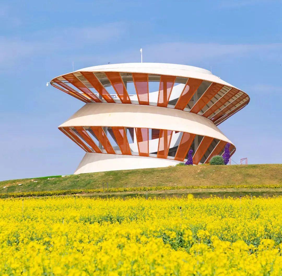 10万余株的五彩油菜花浑然天成、相映成趣。桔黄、粉紫、白色、桔红、砖黄五种颜色的油菜花组成了3300平米的缤纷花海,点缀中心城区。