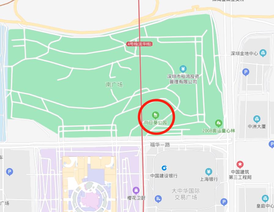 4号线会展中心站B口出,往北走到大中华大厦的北京银行门口,走到马路对面的公园入口处进入,左拐约200米即到。