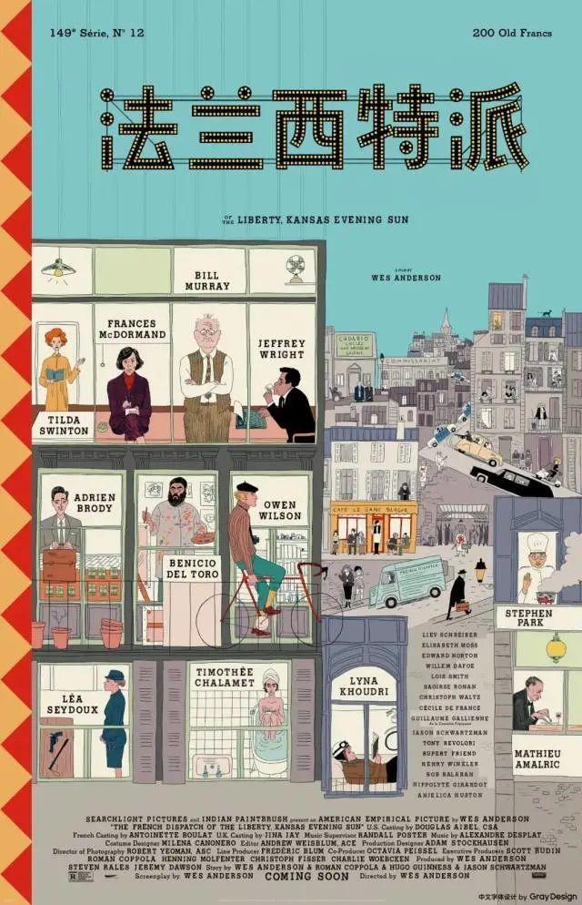 《布达佩斯大饭店》导演韦斯安德森的新作,卡司相当豪华,罗南、甜茶、爱德华·诺顿、雷雅·赛杜均有参演。故事剧情主要是“给20世纪一家美国报纸驻巴黎前哨站记者们的一封情书。”