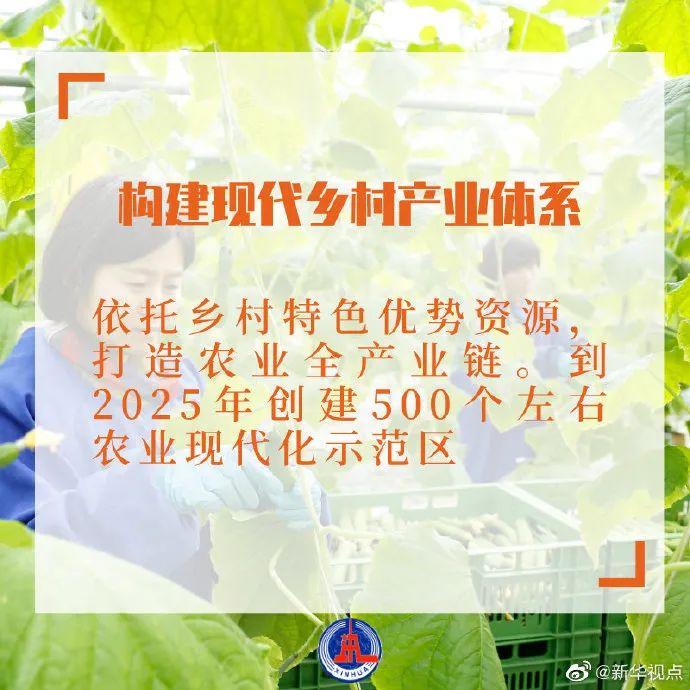 文件确定,把乡村建设摆在社会主义现代化建设的重要位置,全面推进乡村产业、人才、文化、生态、组织振兴,充分发挥农业产品供给、生态屏障、文化传承等功能,走中国特色社会主义乡村振兴道路,加快农业农村现代化,加快形成工农互促、城乡互补、协调发展、共同繁荣的新型工农城乡关系,促进农业高质高效、乡村宜居宜业、农民富裕富足。