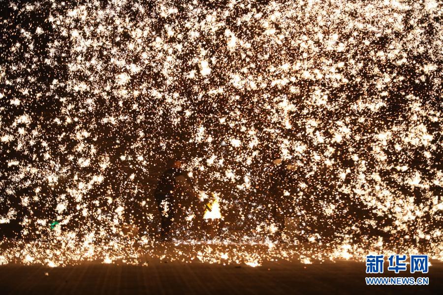 元宵佳节临近,山东省临沂市郯城县郯国古城推出“打铁花”节目表演,红红火火迎元宵。