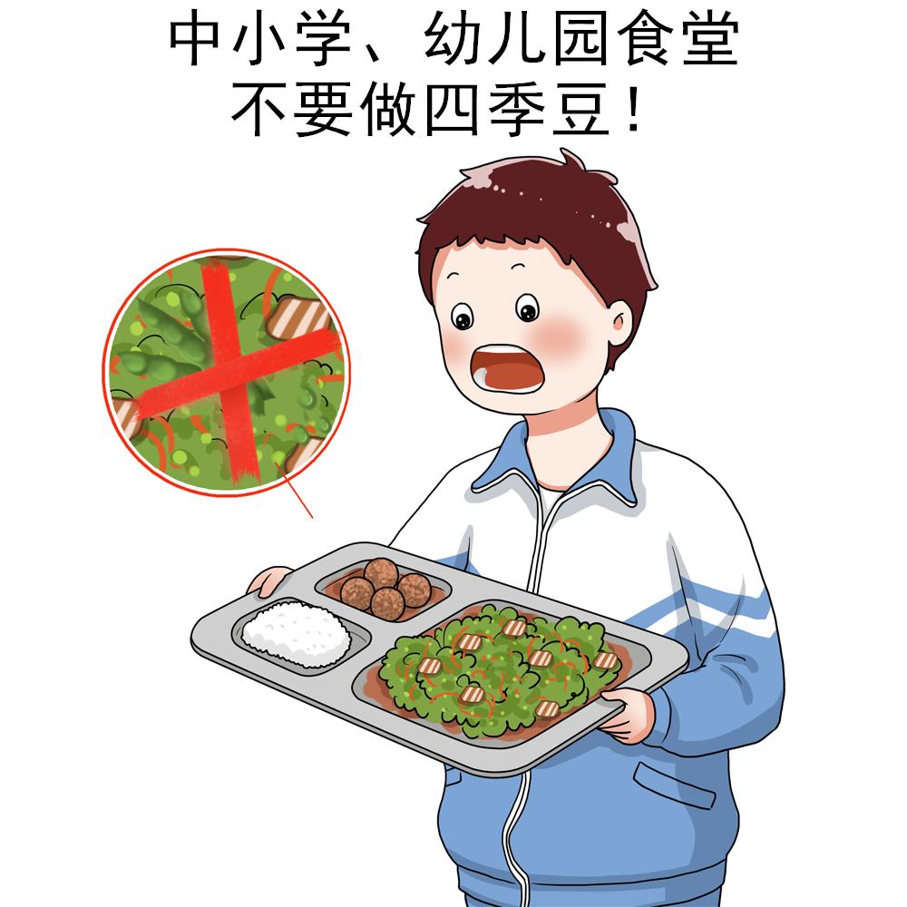 由于集体食堂一次性制作的食材量大,烹炒时容易受热不均匀或不充分,建议不选购四季豆等高风险食品。