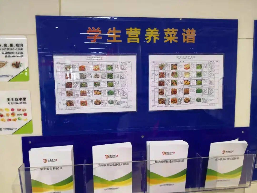 ▲食堂墙上张贴学生营养菜谱