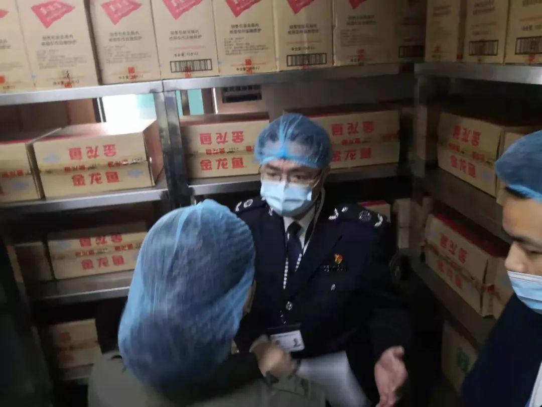 ▲执法人员对后厨调味料进行检查,经检查,调味料均在保质期内,符合相关食品安全要求